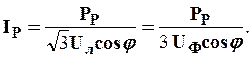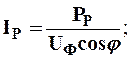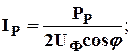 В формулах принято: РР – расчетная нагрузка, кВт; Uф – фазное напряжение, В; Uл – линейное (межфазное) напряжение, В; cosj – коэффициент мощности нагрузки.