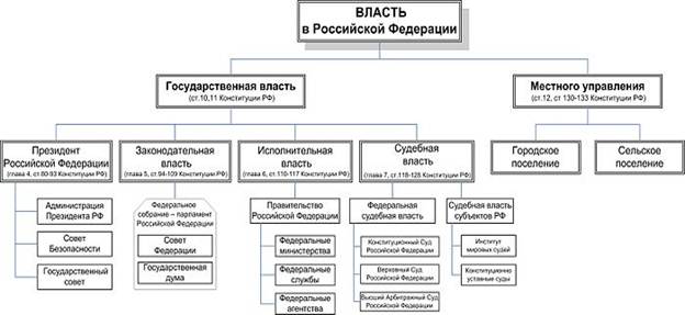 Государственная власть реализуется посредством государственного ап-парата, состоящего из системы государственных органов. Наиболее распро-страненной является разделение органов в соответствии с разделением властей на органы законодательной, исполнительной и судебной власти.