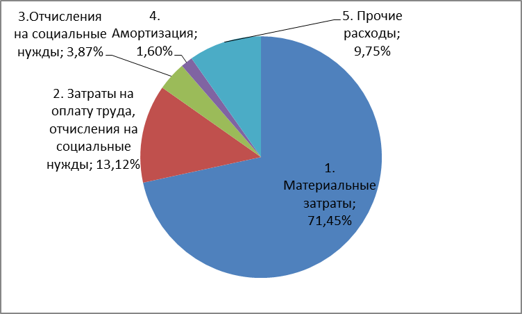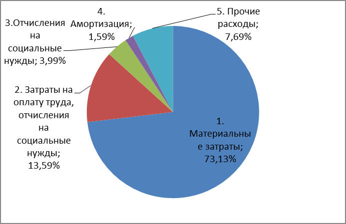 | 1. Материальные затраты | 4 838 626 | 73,13% | 4 493 059 | 71,45% | +345 567 | +1,68 | 107,69% |