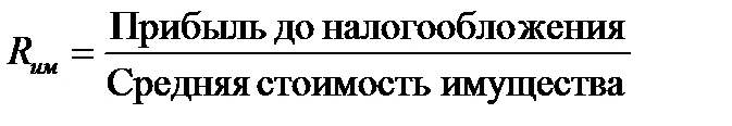 Рентабельность имущества предприятия характеризует прибыль, полученную с каждого рубля, вложенного в имущество, и рассчитывается следующим образом: