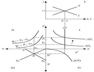 Модель предполагает, что на всех рынках реального сектора установилось равновесие (рис. 16.32).