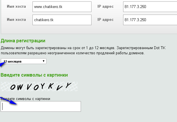Затем выберите срок действия домена (его всегда можно продлить в личном кабинете) и введите капчу.