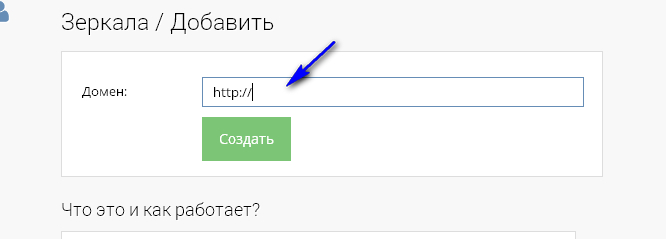 Ну вот, домен создан. Теперь идём в личный кабинет партнёрки и прописываем наш домен. Жмём «Зеркала»-«добавить» и в появившемся поле вводим наше доменное имя и жмём создать.