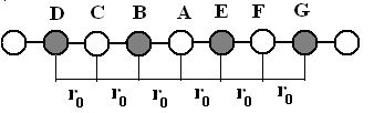 Одновременно ион А отталкивается от находящихся на расстоянии 2r0 от него одноименных с ним анионов C и F; энергия этого взаимодействия записывается: