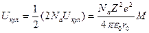 Если пренебречь возможными искажениями реальной структуры кристалла, влиянием поверхностных эффектов на его свойства и считать, что все ионы кристалла находятся в одинаковом окружении, то можно найти полную электростатическую энергию 1 моля кристалла. Как известно, 1 моль ионного кристалла содержит Naположительно заряженных и Na отрицательно заряженных ионов (Na - число Авогадро). Для каждого из этих ионов энергия взаимодействия с решеткой кристалла передается выражением (3), поэтому кулоновскую энергию ионного кристалла можно записать в следующем виде:
