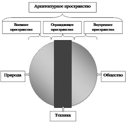 Архитектурное пространство – это совокупность внутреннего, ограждающего и внешнего пространств.
