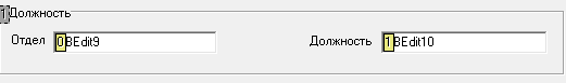 Для таблицы Doljnost на панели GroupBox всего два компонента DBEdit и два поясняющих Label.
