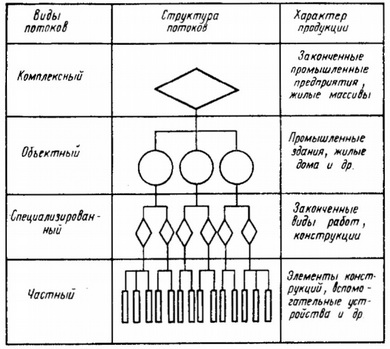 Различают следующие разновидности строительных потоков.