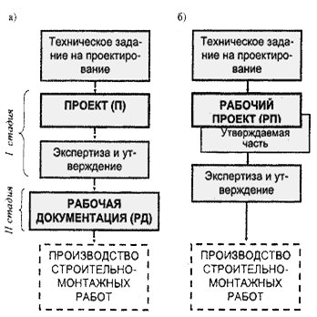 Основным методом проектирования в РФ является двухстадийное проектирование. Одностадийное проектирование применяется лишь для простых объектов или для привязки проектов массового или повторного применения.