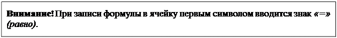 Ø поочередно активизируйте ячейки А1, А5, А7 и обратите внимание на содержимое этих ячеек в строке формул.