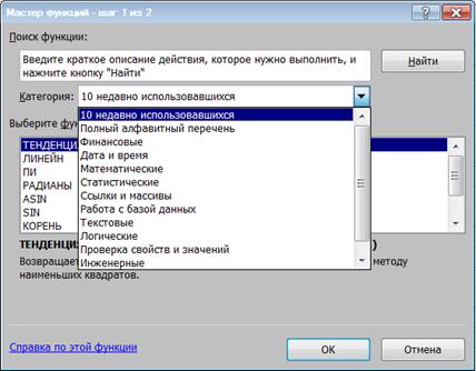 Рис.5. Окно Мастера функций.