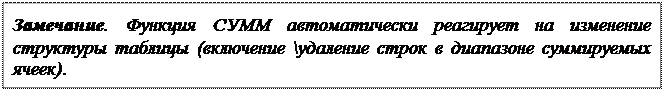 Однако, здесь имеются две неприятности. Вставка строки над областью суммирования и над строкой, содержащей сумму, не изменит значения функции СУММ().