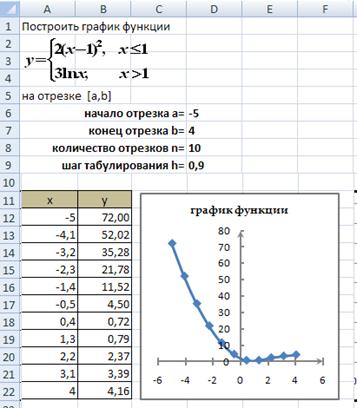 Ø для вычисления значений функции в равноудаленных точках отрезка используйте логическую функцию ЕСЛИ.