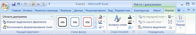 С помощью вкладки Формат можно изменять: область диаграмм, стили фигур, стили WordArt и др.