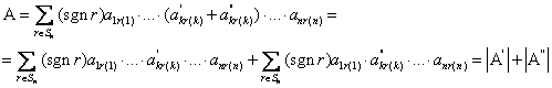 - строке (столбце), записаны первые слагаемые, а в матрице второго определителя вторые слагаемые. Остальные элементы матриц этих определителей такие же как у матрицы
