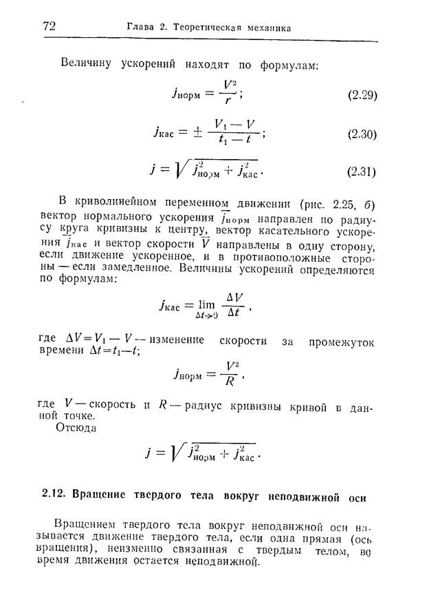 Вкриволинейном переменном движении вектор нормального ускорения / норм направлен по радиусу круга кривизны к центру, вектор касательного ускорения / нас и вектор скорости V направлены в одну сторону, если движение ускоренное, и в противоположные стороны - если замедленное.