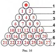 Вот до сей поры есть соответствие. Т.е. дальше мы все 27 Земель распишем. А пока вспомним, харийскую арифметику. Помните, триады рисовали? Трижды семь двадцать восемь (рис. 16). И вот эта структура и триада на семь она тоже дает двадцать восемь. Вот это и есть как бы Образная структура Системы Ярило-Солнца, где: