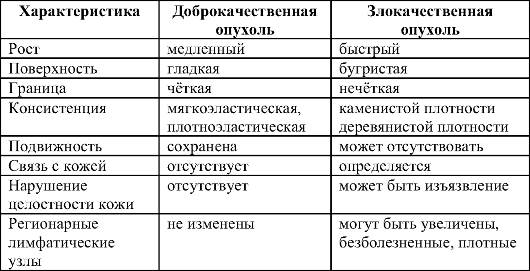 Клиника и диагностика доброкачественных и злокачественных новообразований различна, что связано с их влиянием на окружающие органы и ткани, да и организм больного в целом.
