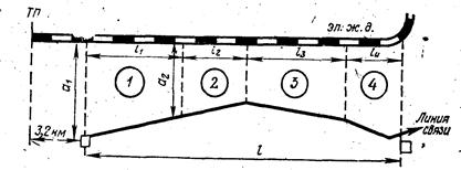 Рис. 1. Схема сближения воздушной линии связи с электрической железной дорогой переменного тока.