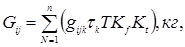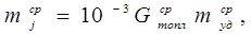 — средняя удельная масса j-го компонента с учетом работы на всех ПК, кг/т;