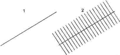 Теперь можно, изменив фон, окружающий линию 2 (например, множеством параллельных штрихов вокруг нее), создать впечатление, что ее длина изменилась, и количество ошибок при определении большей длины возрастет. И хотя собственная длина линий не изменилась, большинство из созерцающих будут констатировать кажущееся изменение длины той из них, у которой меняется окружающий фон.