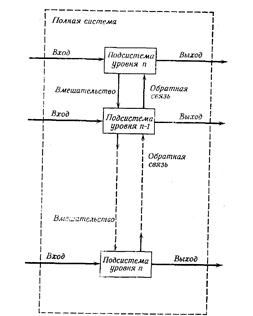 Понятие многоуровневой иерархической структуры нельзя определить одной краткой и сжатой формулировкой. Поэтому мы ответим на поставленный вопрос путем указания нескольких существенных характеристик, присущих всем иерархическим системам. К ним относятся: последовательное вертикальное расположение подсистем, составляющих данную систему (вертикальная декомпозиция); приоритет действий или право вмешательства подсистем верхнего уровня; зависимость действий подсистем верхнего уровня от фактического исполнения нижними уровнями своих функций.