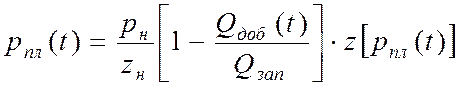 2) По уравнению материального баланса газовой залежи для реального газа определяю зависимость изменения во времени среднего пластового давления, используя метод итераций: