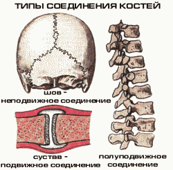 Все виды соединений костей, juncturae ossium (рис. 46), делят на две группы: непрерывные и прерывные. Непрерывное соединение — фиброзное соединение, junctura flbrosa, — такой вид соединения, при котором кости как бы сращены между собой посредством того или иного вида соединительной ткани; в зависимости от рода ткани, соединяющей рядом лежащие кости,