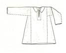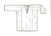 | Рубаха с прямыми сшивными плечами, вертикальным швом посередине стана, округлым вырезом горловины, широкая, с длинными рукавами |