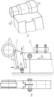 | Рис. 3.2. Призматический фасонный резец: (а)исхема его работы (б): 1-резец; 2-державка |