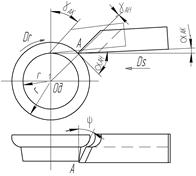 | Рис. 3.5. Изменение переднего и заднего углов у тангенциального резца |