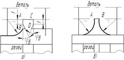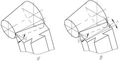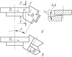 | Рис. 3.6. Призматический (а) и круглый (б) фасонные резцы с наклонной установкой |