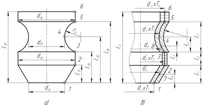 На профиле детали обозначаются характерные узловые точки 1, 2, 3 и др. (рис.3.10, а). По диаметрам, указанным на чертеже детали (