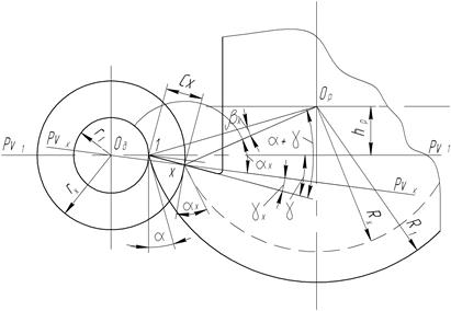 углов назначаются для базовой точки 1, лежащей на уровне центра Од вращения детали. Во всех остальных точках Х режущего лезвия, в зависимости от расположения их на фасонном профиле резца, величины углов