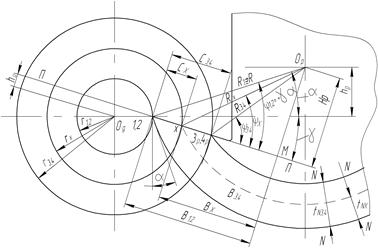 | Рис. 3.24. Расчетная схема определения профиля круглого резца в нормальной плоскости |