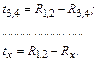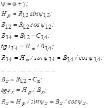 Руководствуясь схемой (см.рис.3.24), можно составить ряд трехчленных уравнений: