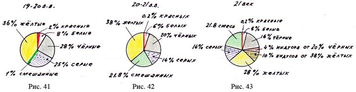 Кроме того о 20% черных отделить 4% индусов, останется 16% черных. Это на 21 век, можно сказать на первые года Мелениума (рис. 43).
