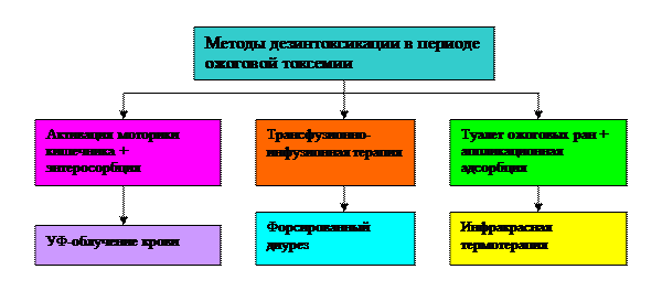 Таблица 26. Основные средства и дозы лечения больных в периоде острой ожоговой токсемии (Л. И. Герасимова, 1995).