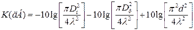 где три члена в правой части равенства представляют собой усиление передающей линзы, приемной линзы и потери при распространении в канале.