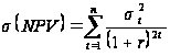 В случае отсутствия корреляции между элементами потока платежей ожидаемая величина NPV и ее стандартное отклонение у могут быть определены из следующих соотношений: