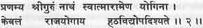 Распростершись сначала перед гуру, йог Сватмарама передает знания хатха-йоги только ради высшего состояния йоги (раджа-йоги).