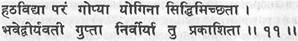 Хатха-йога является величайшим секретом йогов, желающих достичь совершенства. И действительно, чтобы быть плодотворной, она должна держаться в секрете; раскрытая, она становится бессильной.