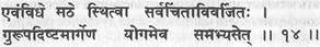 Таким образом, проживающий в уединенном месте и освободившийся от мыслей (излишнего умствования), йог должен практиковать под руководством гуру.