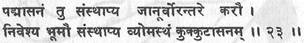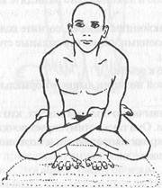 Приняв падмасану, вставь руки между бедрами и коленями, прочно размести ладони на земле и подними тело в воздух. Это куккутасана.