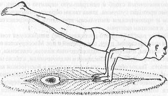 Ляг на живот, положив обе ладони на землю (под телом) и локти по бокам от области пупка. Высоко подними тело, удерживая его как палку. Йоги называют эту позу позой павлина.