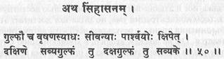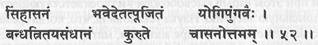 (52) Это симхасана, весьма почитаемая величайшими йогами. Эта превосходная асана облегчает три бандхи.