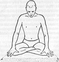 (51) Помести ладони на колени, растопырь пальцы, рот держи открытым и пристально гляди на кончик носа, сконцентрировав ум.