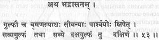(54) Затем крепко обхвати пальцами ступни, которые лежат «на боку», и оставайся неподвижным. Это бхадрасана, которая разрушает все болезни. Йоги, достигшие совершенства (сиддхи), называют ее горакшасаной.