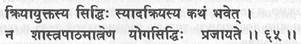 (66) Ни ношение одеяния сиддхи, ни разговоры о практике (не приводят к совершенству). Только через применение практики человек становится сиддхой. Это истина без всяких сомнений.