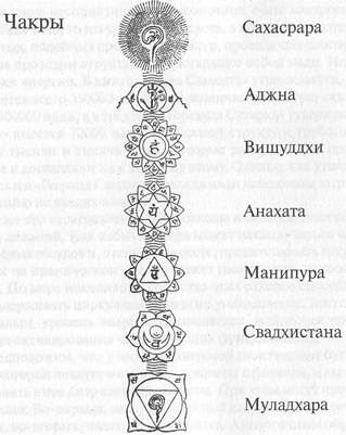 В процессе пробуждения кундалини садхака должен не только прочистить энергетические каналы (нади), но и нарастить количество и качество праны и ее запасы. Прана накапливается в шести основных центрах, расположенных вдоль позвоночного столба. Эти центры расположены в тонком теле и соответствуют группам нервных сплетений в физическом теле. В тонком теле они известны как чакры. Слово чакра означает «круговое движение или колесо». Прана шакти и манас шакти собираются в чакрах и образуют энергетические массы, вращающиеся в виде водоворотов. Каждая чакра является точкой, связывающей между собой многие нади. В теле имеется бесчисленное множество чакр, но семь основных чакр, расположенных вдоль сушумна нади, особым образом связаны с эволюцией человека.